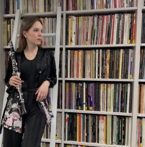 Sinfonieorchesters das Klarinettenkonzert op. 57 von Carl Nielsen spielen; in der Vergangenheit spielte sie Mozarts Konzert KV622 in Begleitung des Galilei- Orchesters.